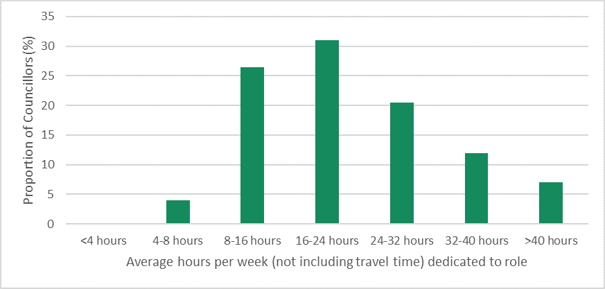The role of Mayor has been described as a full-time commitment.35 For example, in a 2019 survey conducted by the Local Government Inspectorate (LGI),36 around one-third of respondents who were Mayors reported spending more than 40 hours per week on the role, and approximately one-quarter reported spending between 32 and 40 hours per week.
